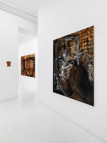 Symbole, nośniki uniwersalnych emocji i lęków, w twórczości Julii Szczerbowskiej powracają jak uporczywe wspomnienia, które domagają się przepracowania. Oleje artystki rozgrywają się w miejscu progu i po progu, w stanie, w którym wydarzenie kulminacyjne już się dokonało, ale jego pogłos wciąż rezonuje w ciele. Kompozycje są gęste, kolory — ciężkie, przeładowane, jak nagromadzone w pamięci wspomnienia. Powierzchnia obrazów działa niczym namalowane na nich lustro — przestrzeń liminalna — nie odbija twarzy, nie daje odpowiedzi. Ujawnia pęknięcie między tym, kim jesteśmy, a tym, kim nie umiemy (i nie chcemy) już być. Rozproszone, nieuchwytne oblicza w pracach obojga artystów przypominają, że współczesny kontakt z własną tożsamością rodzi się z miejsca konfliktu.