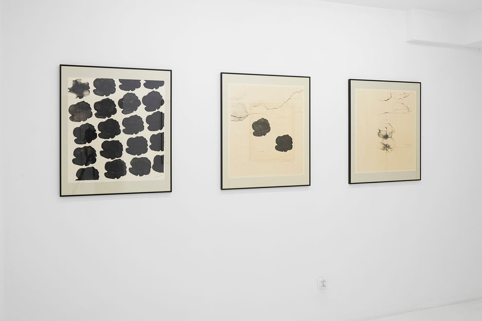 Zaprezentowana zostały również Triady, reliefy realizowane od 1985, które uchodzą za formę zintegrowania dotychczas rozproszonych na płótnach, kartkach dziennika koncepcji i fascynacji różnymi formami artystycznego wyrazu. Triady są kompozycjami składającymi się z trzech warstw, każda z nich została potraktowana w odmienny sposób; pokryta drobnym, charakterystycznym pismem artystki (pisanym wspak) – jej osobistymi refleksjami, fragmentami utworów, kolejne warstwy są usiane misternymi rysunkami, lub równomiernie pokryte farbą. Następnie artystka wycinała niewielkich rozmiarów otwory, odsłaniając kolejne elementy kompozycji, finalny efekt powierzając przypadkowi.